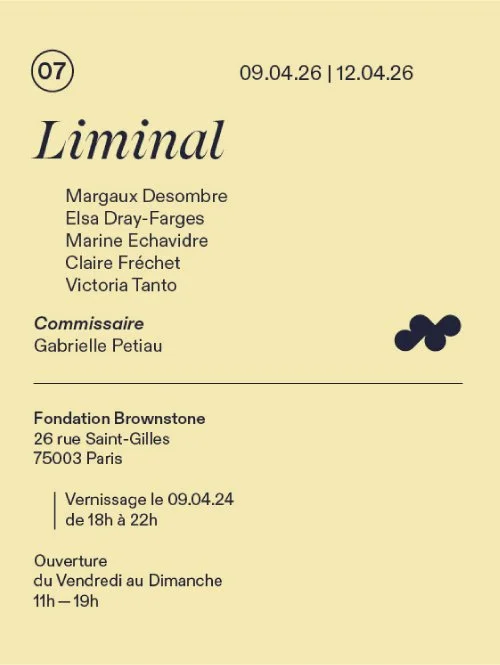 EXPOSITION LIMINAL Thursday, April 9, 2026 6:00 PM 18:00 Sunday, April 12, 2026 7:00 PM 19:00 Association NOEMI - Espace Browstone 26 Rue Saint-Gilles Paris, IDF, 75003 France (map) Google Calendar ICS En savoir plus